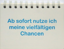 Wahre Lebenskunst besteht darin, dem Unterbewusstsein möglichst nur die Nahrung zuzuführen, die ihm gut bekommt. Denn Ihr Unterbewusstsein re-agiert auf das, was Sie ihm gedanklich einflößen. Es wird von diesen verbalen Programmen gesteuert. Das Unterbewusste trifft keine Wahl der Inhalte. Es speichert und setzt um. Die Inhalte auszuwählen bleibt Ihrem Verstand vorbehalten. Wählen Sie daher Ihre Gedanken bewusst ! Geben Sie Ihrem Unterbewusstsein Tag für Tag lebensfrohe Gedanken als frische Nahrung und Antriebskraft für Ihren inneren, mentalen "Motor". Erfolgsmenschen sind erfolgreich, weil sie ihrem Unterbewusstsein immer wieder fröhliche, aufbauende und positive Suggestionen geben. Die stabilen,